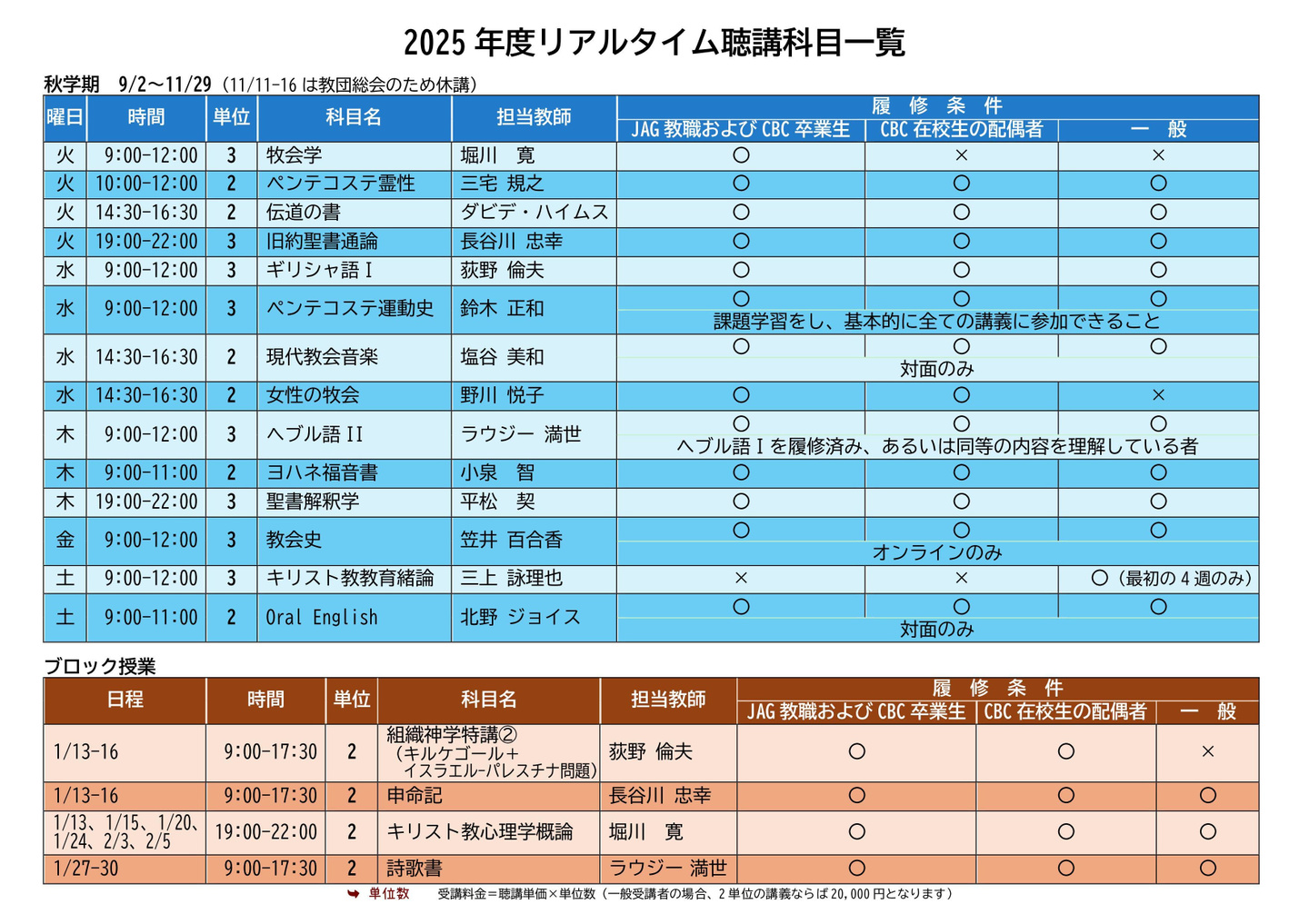聴講制度を通して、福音宣教・牧会の最前線におられる教師から、聖書の深さ、神学の広さ、宣教への情熱を学んでいただく機会としてぜひご活用ください。