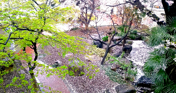 その空間に入ると都会の中にいるとは思えないほど、静かな気持ちになれる学校の庭。春には桜が咲き誇り、秋には楓が紅く色付き季節の移り変わりを教えてくれます。池の中では鯉や金魚、めだかが泳いでいる様子を見ることができます。